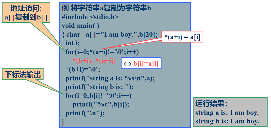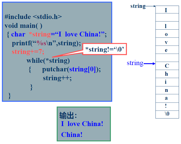 2. 在程序中用赋值的方式:指针变量=字符串;