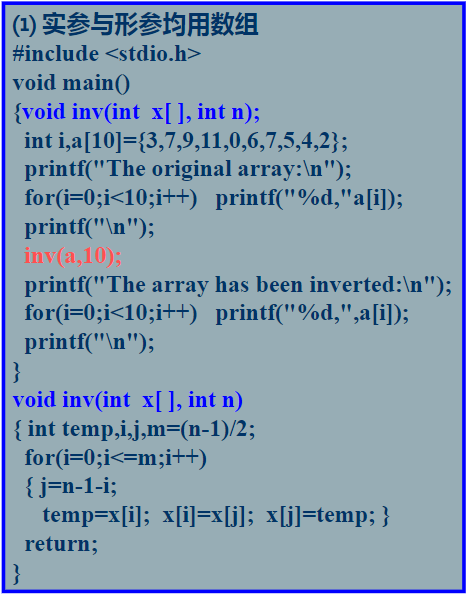 (2). 在程序中用赋值的方式:指针变量=数组名;