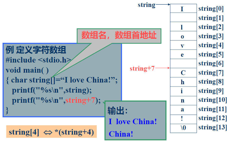 (3). 引用下标为 i+k 的数组元素:*(指针变量 + k);