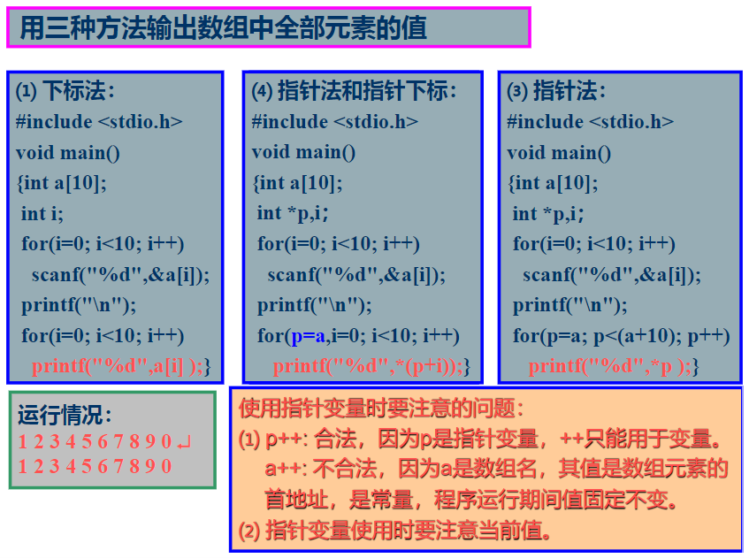 4. 当指针变量指向一维数组元素,利用指针变量引用数组元素的方法如下: