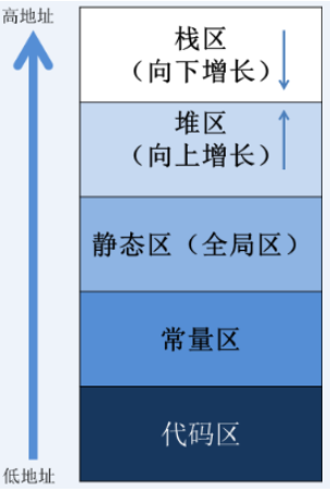 代码段(代码区):用来存放程序语句进行编译后,形成的机器代码。即存放函数体的二进制代码。