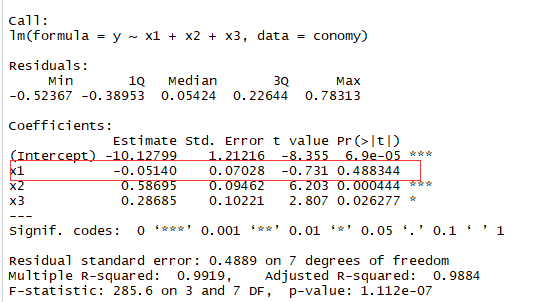 lm.sol<-lm(y~x1+x2+x3, data=conomy)