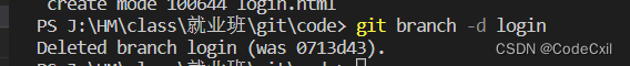 ⑦更新完版本之后 我们可以执行git push 同步一下数据 然后执行git brand -d login 名称 删除分支