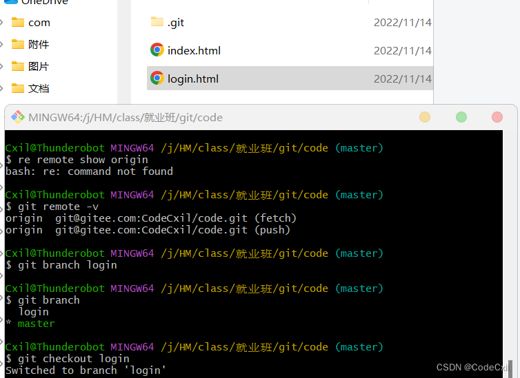 ①通过执行 git branch login 来创建一个分支