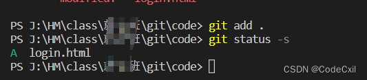 ②生成git 仓库之后 创建一个想要上传到云库的文件,然后通过 git add . 添加所有文件命令 添加跟踪 也叫添加到暂存区等