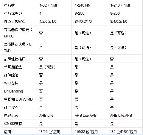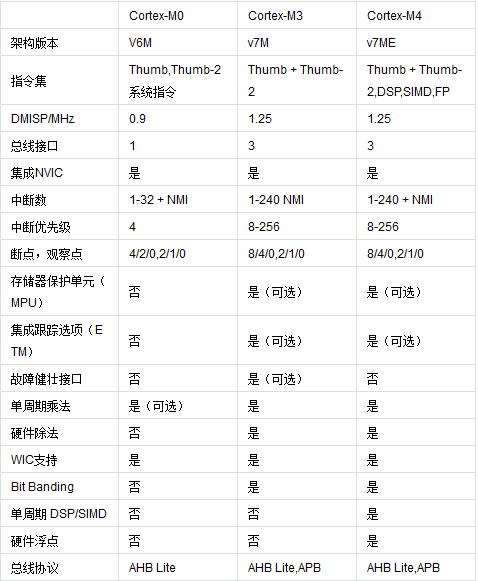 Cortex-M系列又可分为Cortex-M0、Cortex-M0+、Cortex-M3、Cortex-M4;