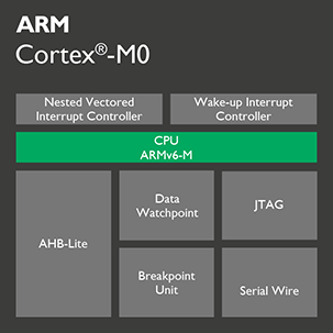 Cortex-M0是Cortex-M家族中的M0系列。最大特点是低功耗的设计。Cortex-M0为32位、3级流水线RISC处理器,其核心仍为冯.诺依曼结构,是指令和数据共享同一总线的架构。作为新一代的处理器,Cortex-M0的设计进行了许多的改革与创新,如系统存储器地址映像(system address map)、改善效率并增强确定性的嵌套向量中断系统(NVIC)与不可屏蔽中断(NMI)、全新的硬件除错单元等等,都带给了使用者全新的体验和更便利、 更有效率的操作。