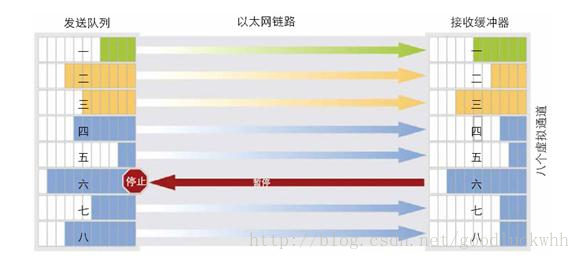 该图中虚拟通道六的流量将被暂停,而其它通道的服务不会受到影响。