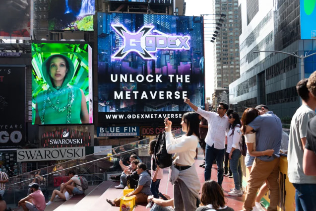 NFT.NYC 期间,时代广场上的一个广告牌上写着「解锁元宇宙」