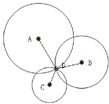 R3。这样就符合三边定位法的求解条件了,最后利用圆心