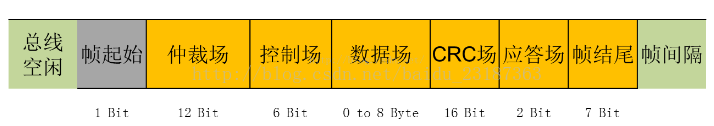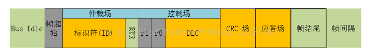 IDE:Identifier Extension标识符扩展位,标准帧为显性0,扩展帧为隐性1。