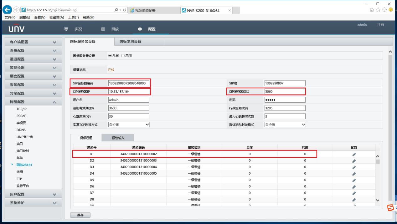 宇视网络视频录像机国标配置界面
