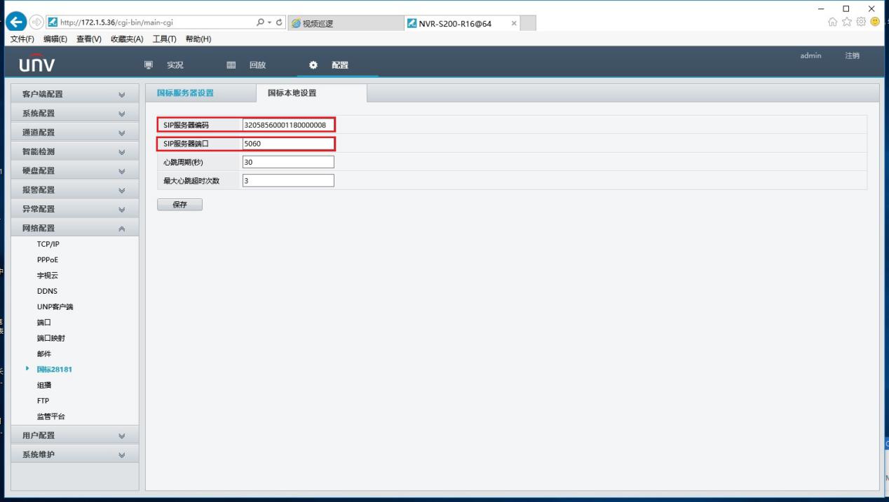 1、SIP服务器编码:改编码为20位国标编码,且保证11~13位为118(118代表NVR)