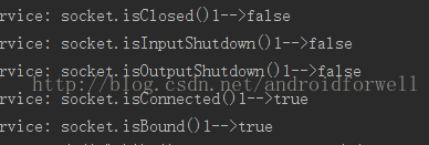 3.由于客户端一直在轮询发送并接收服务起的消息,当服务器端socket主动断开时,客户端也要断开,但是在开发中,服务器端的socket断开时,客户端一直在while循环中读取消息,使用字节读取时,调用到is.read(data);方法也不会抛出异常(但是好多文章中都写此时会抛出异常,但是我这里没有抛出,原因未知),而是一直读取字节长度为0 的空数据却不结束,使用socket的isClosed()、isConnected()、isInputStreamShutdown()、isOutputStreamShutdown()等判断socket与服务器的连接状态均无效,原因在于上这些方法都是访问socket在内存驻留的状态,而非与服务器的实时状态,因此判断是无效的,以下三张截图: