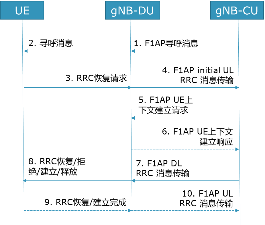 其中,第5和6步表明UE上下文信息保留在gNB-DU中。