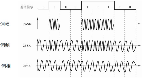 - 通过改变载波信号的振幅来表示数字信号1和0,而载波的频率和相位都不改变