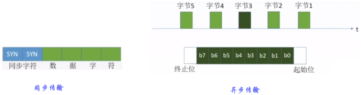 - 同步传输:在同步传输的模式下,数据的传送是以一个数据区块为单位,因此同步传输又称为区块传输。在传送数据时,需先送出1个或多个同步字符,再送出整批的数据。