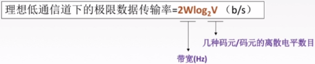 - 理 想 低 通 信 道 下 的 极 限 数 据 传 输 率 = 2 W l o g 2 V ( 单 位 为 b / s ) 理想低通信道下的极限数据传输率=2Wlog_2V (单位为b/s) 理想低通信道下的极限数据传输率=2Wlog2V(单位为b/s)