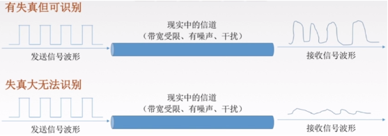 - 在任何信道中,码元传输的速率是有上限的。若传输速率超过此上限,就会出现严重的码间串扰问题,使接收端对码元的完全正确识别成为不可能