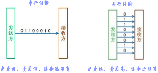 数 据 传 输 方 式 { 串 行 传 输 : 将 表 示 一 个 字 符 的 8 位 二 进 制 数 按 由 低 位 到 高 位 的 顺 序 依 次 发 送 并 行 传 输 : 将 表 示 一 个 字 符 的 8 位 二 进 制 数 同 时 通 过 8 条 信 道 发 送 数据传输方式begin{cases} 串行传输:将表示一个字符的8位二进制数按由低位到高位的顺序依次发送 \ 并行传输:将表示一个字符的8位二进制数同时通过8条信道发送 \ end{cases} 数据传输方式{串行传输:将表示一个字符的8位二进制数按由低位到高位的顺序依次发送并行传输:将表示一个字符的8位二进制数同时通过8条信道发送