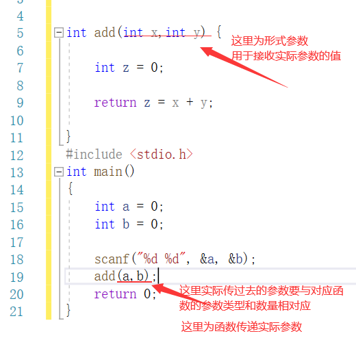 真实传给函数的参数,叫实参,实参可以是:常量,变量,表达式,函数等,无论实参是何种类型的量,在进行函数调用时,它们必须有确定的值,以便把这些值传给形参。
