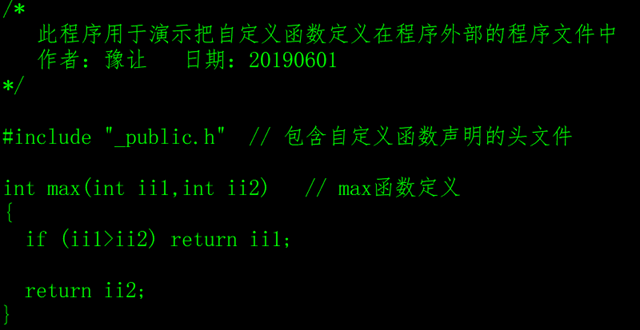 如果自定义函数是一个公共的功能模块,就可以在其它的程序文件中定义(如_public.c),编译的时候,要把调用者程序和自定义函数的程序文件一起编译。