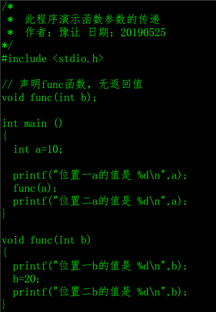 函数的参数可以理解为函数的局部变量,参数传递就是调用者程序把变量(或常量)的值复制一份给函数的参数,简单说来就是复制的过程。一旦完成数据的复制,调用者程序的变量和函数的参数就再也没有瓜葛了,所以,在函数调用的过程中,函数的参数的值发生改变并不会影响调用者程序的变量的值。