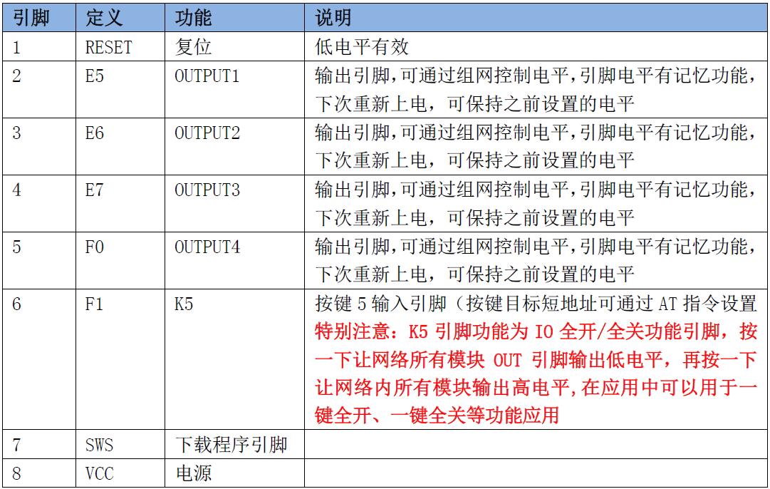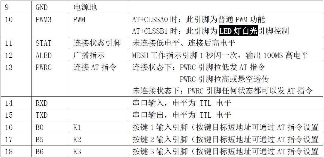 JDY-10M BLE组网模块引脚功能说明