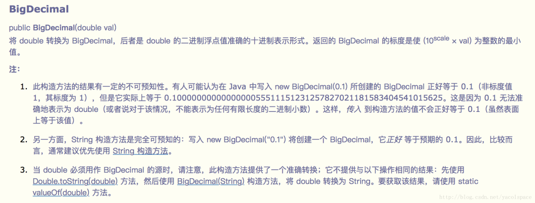 现贴出BigDecimal的一个构造函数的文档供大家参考