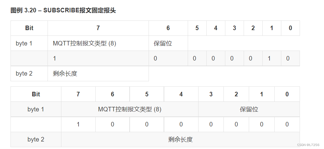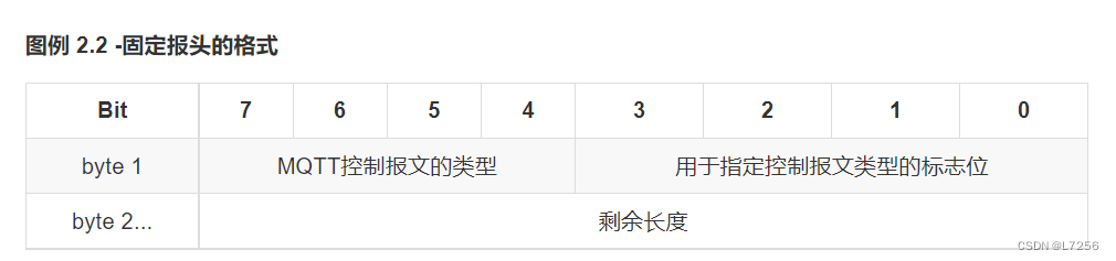 - Fixed header:2bytes的固定header