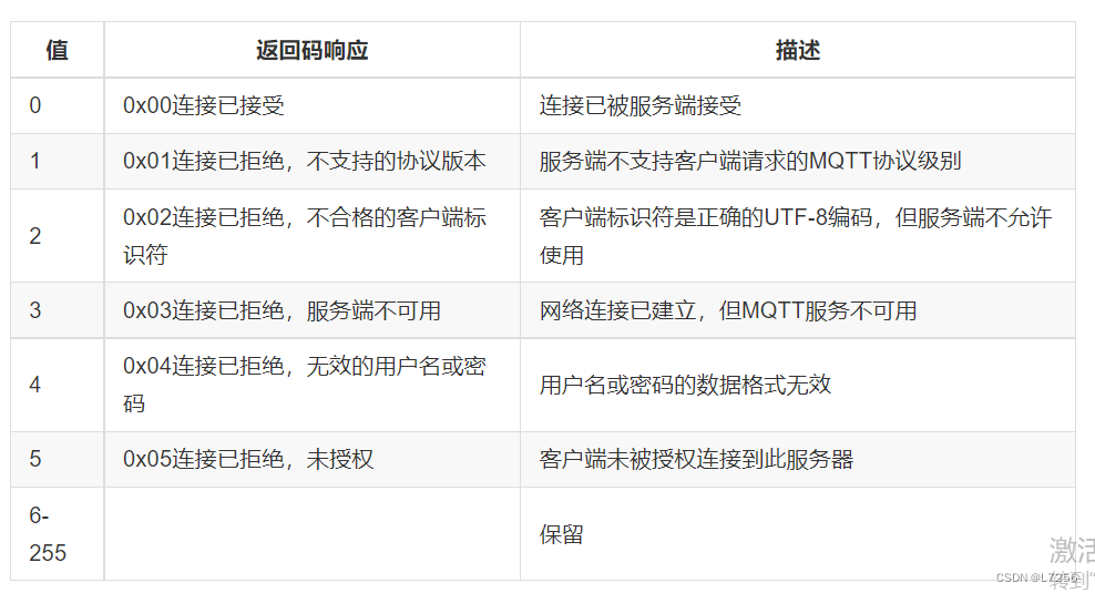 参考:3.2 CONNACK – 确认连接请求 · MQTT协议中文版
