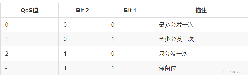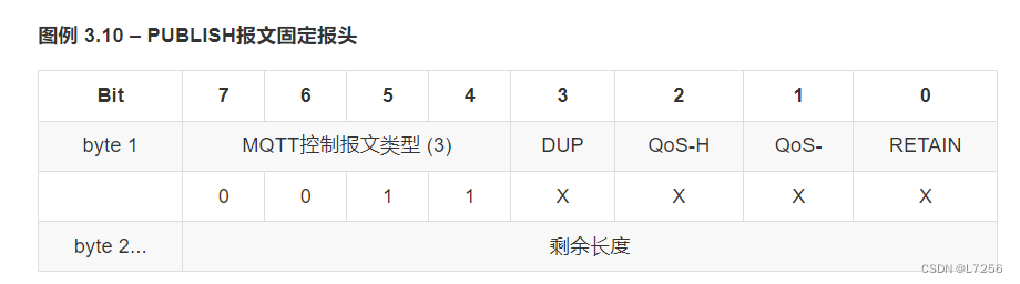 DUP标志被设置为0,表示这是客户端或服务端第一次请求发送这个PUBLISH报文。如果DUP标志被设置为1,表示这可能是一个早前报文请求的重发。