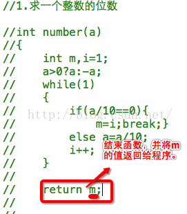 表示从被调函数返回到主调函数继续执行,返回时可附带一个返回值,由return后面的参数指定。如下图: