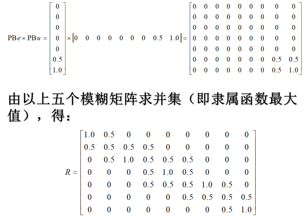 模糊控制器的输出为误差向量和模糊关系的合成: