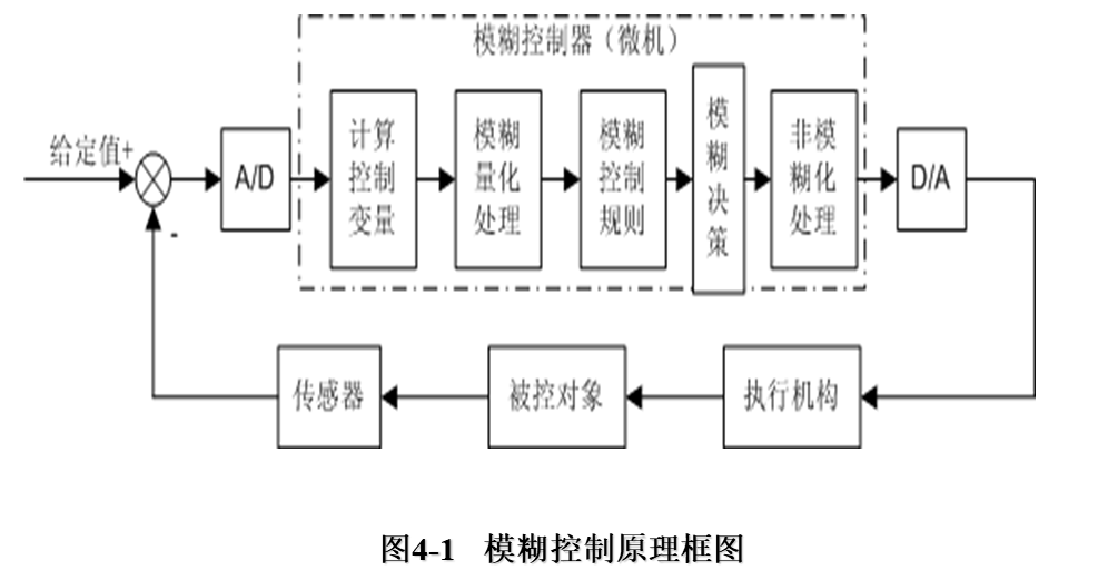 模糊控制是以模糊集理论、模糊语言变量和模糊逻辑推理为基础的一种智能控制方法,它是从行为上模仿人的模糊推理和决策过程的一种智能控制方法。该方法首先将操作人员或专家经验编成模糊规则,然后将来自传感器的实时信号模糊化,将模糊化后的信号作为模糊规则的输入,完成模糊推理,将推理后得到的输出量加到执行器上。