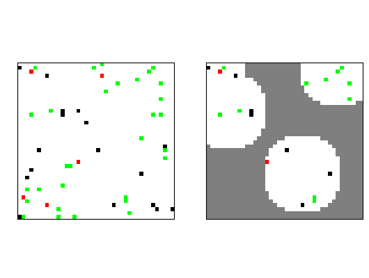 这个是UCL汪军老师团队Mean Field 论文里用到的环境,主要研究的是当环境由大量智能体组成的时候的竞争和协作问题。也可以看成是复杂的Grid World环境。Render如下: