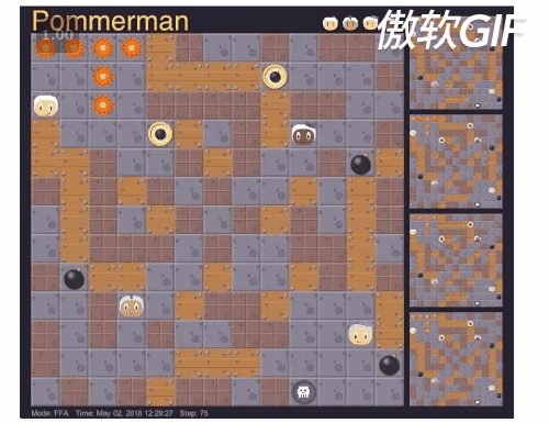 这个炸弹人环境是NIPS18的比赛挑战项目,可以组队进行参加。环境主要是2v2,每队控制两个agent,agent是partial observable,应该是只能观测到自己附近的环境。此外还有个场景可以进行通讯。