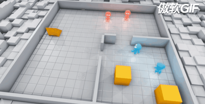 Neural MMOs也是OpenAI开源的一个大型的复杂ma游戏场景,没啥特别的特点,就是大,毕竟是MMO。这张大地图中,由于资源有限,agent要学着合作/竞争活下去,据说科学家们都可以基于此来研究生物进化,种群形成等很多社会性行为的形成过程。由于环境比较大,所以IO甚至都会有点比较大问题,这么多agent的状态的获取等都需要有特殊的方式来进行优化,他们的论文也讲了不少工程方面的事情,中了今年的AAMAS20的短文。Render如下: