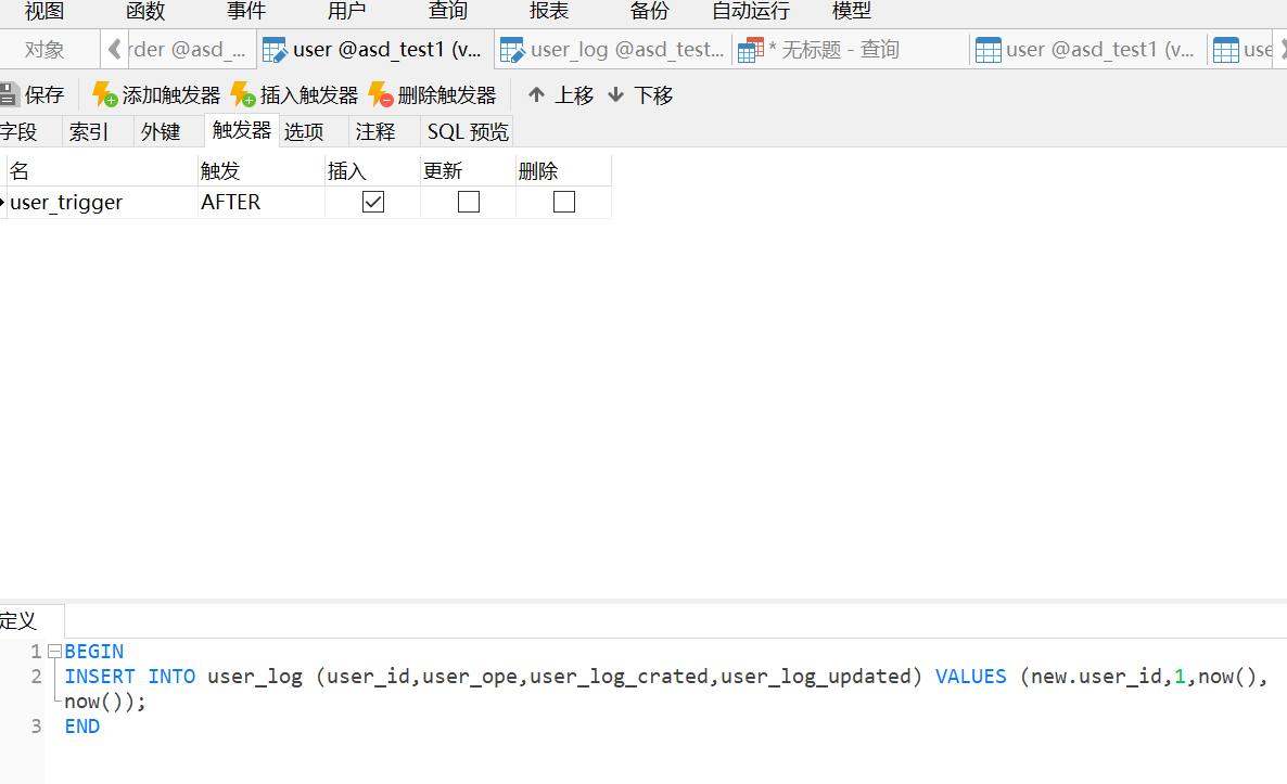 以上就是勤奋秀发最近收集整理的关于navicat写mysql的触发器的全部内容,更多相关navicat写mysql内容请搜索靠谱客的其他文章。