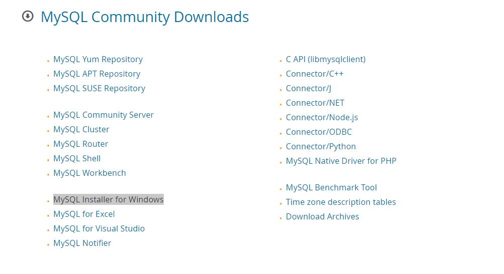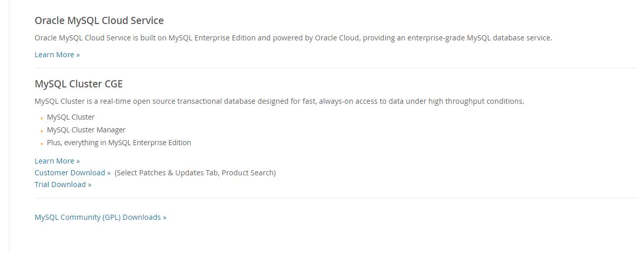 (注:GPL版本为开源,非商用;commercial为商用版)点击链接进入后, 会有一大堆可下载的选项对应不同的安装方式。windows安装选择MySQL Installer for Windows