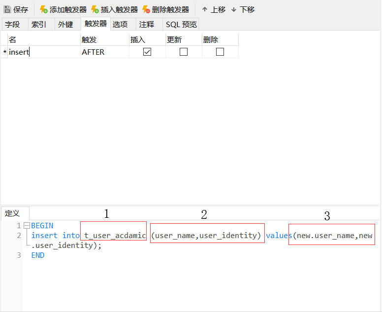 触发器新增: