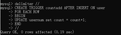 以上就是土豪眼睛最近收集整理的关于cmd 命令行模式下怎么为mysql创建触发器的全部内容,更多相关cmd内容请搜索靠谱客的其他文章。