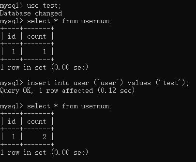 CREATE TRIGGER countadd AFTER INSERT ON user