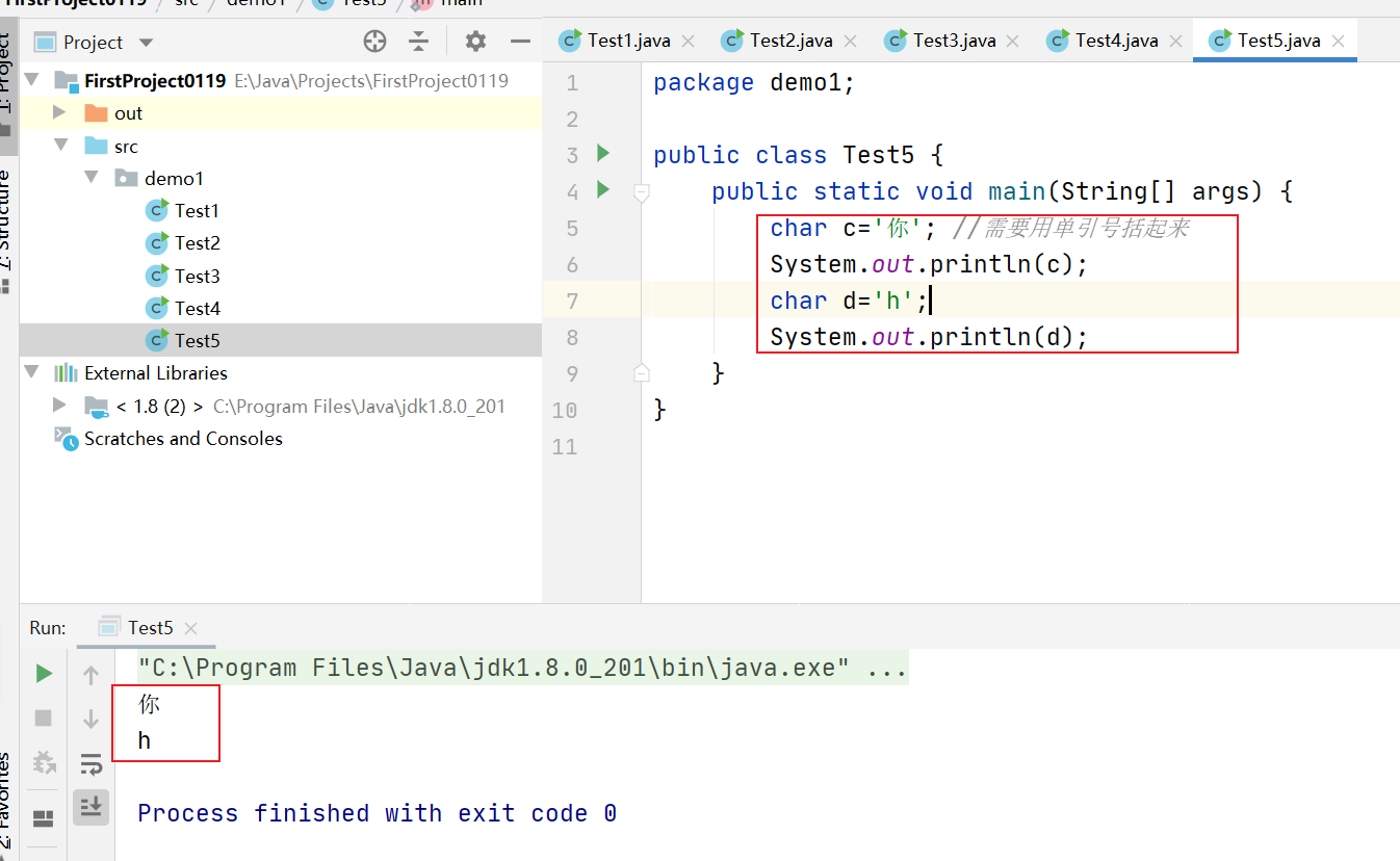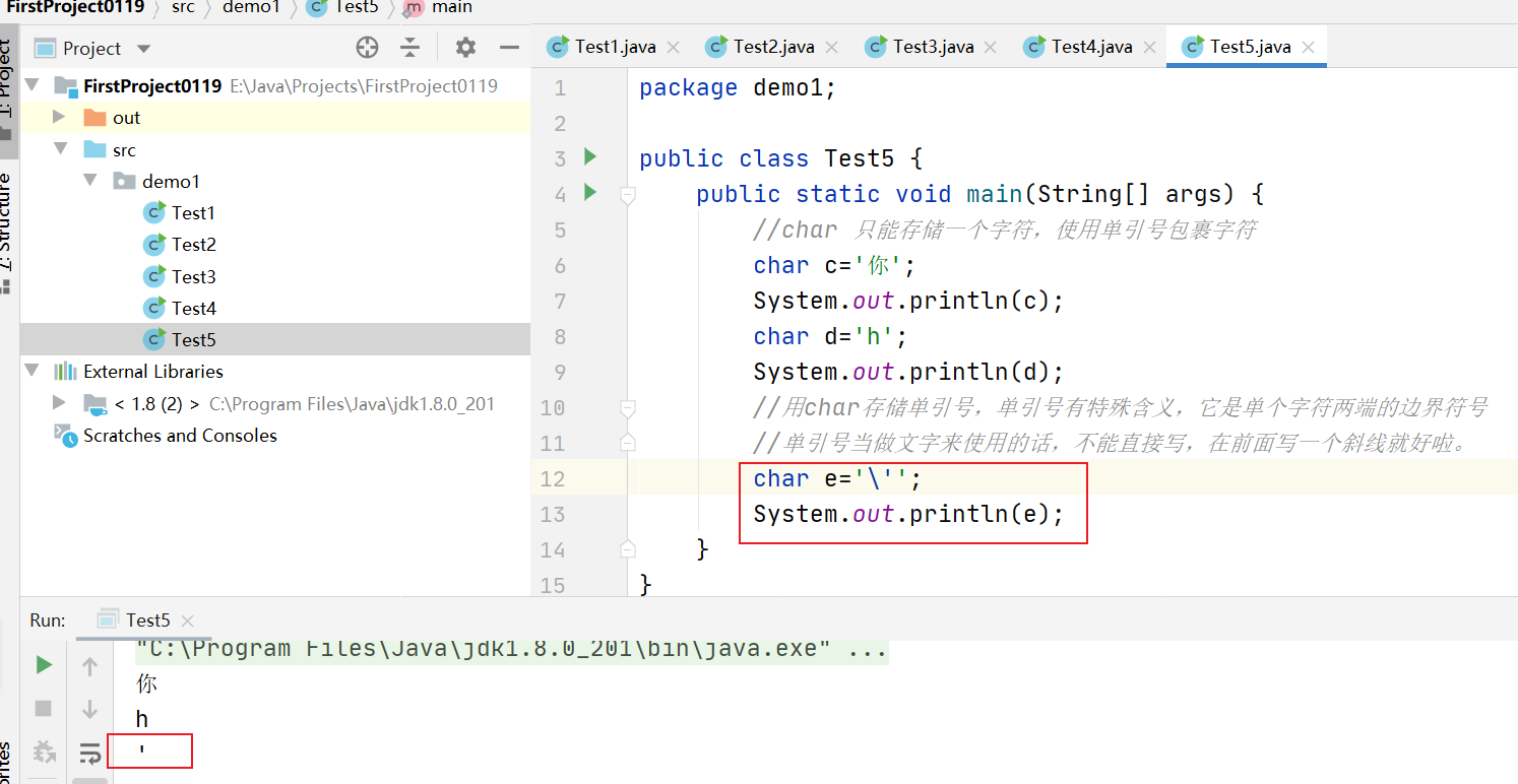 //用char存储单引号,单引号有特殊含义,它是单个字符两端的边界符号