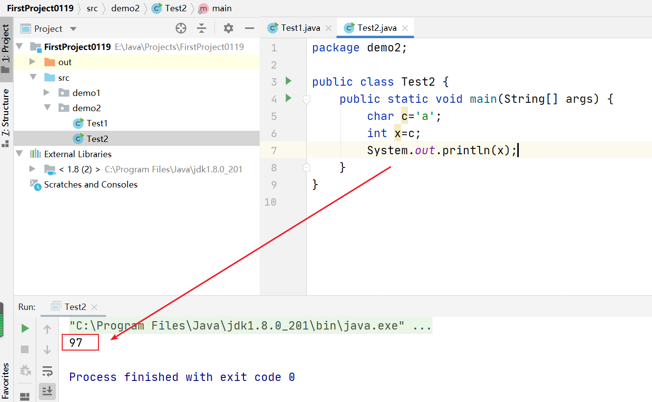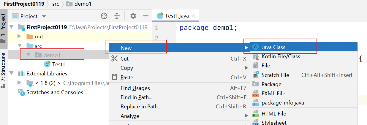 咱们在上节Idea建立的demo1基础上再次新建一个类:Test2