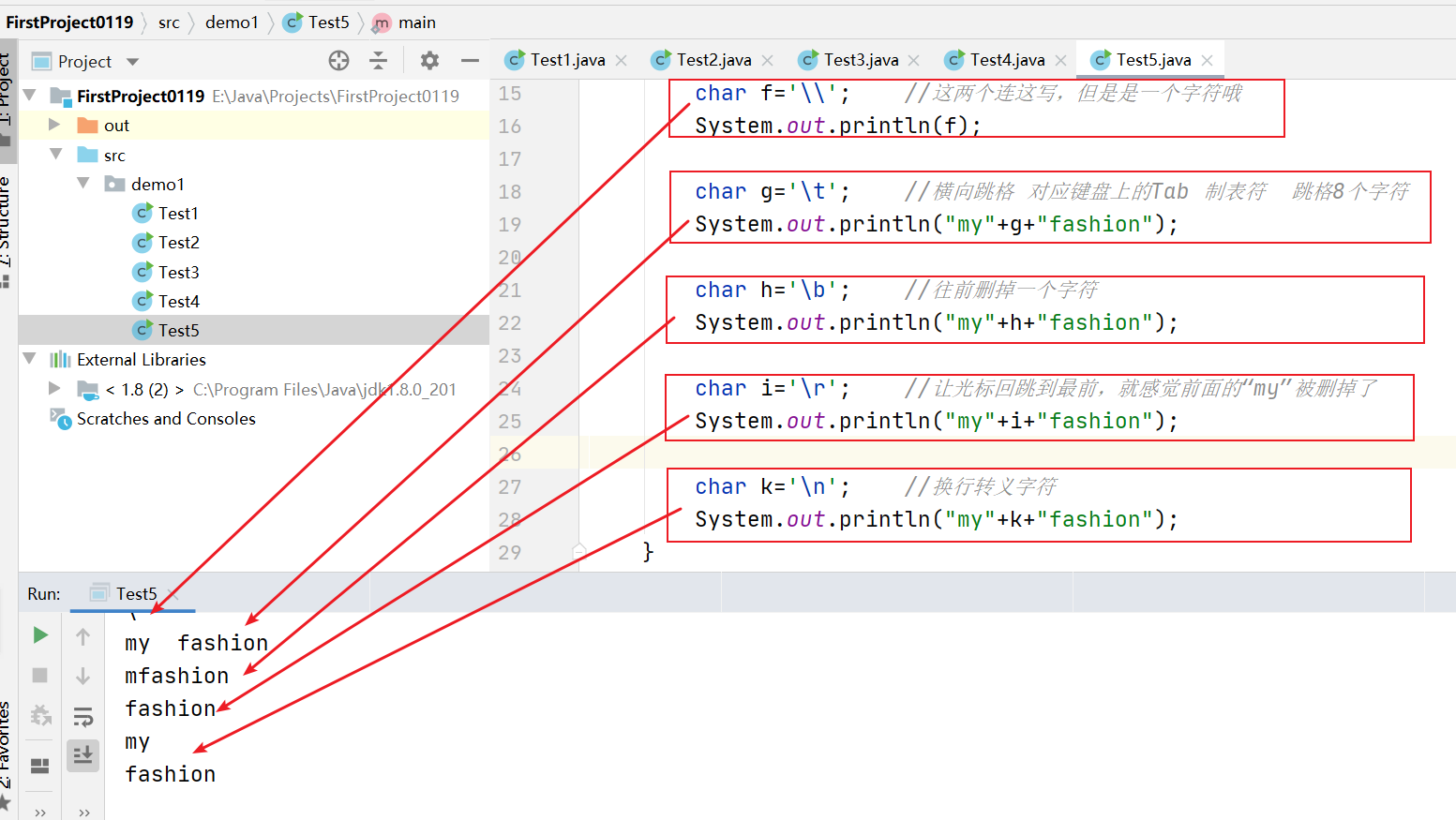 (4)t 制表符 一个制表符位8个空格 一个字母1个空格 一个汉字是2个空格
