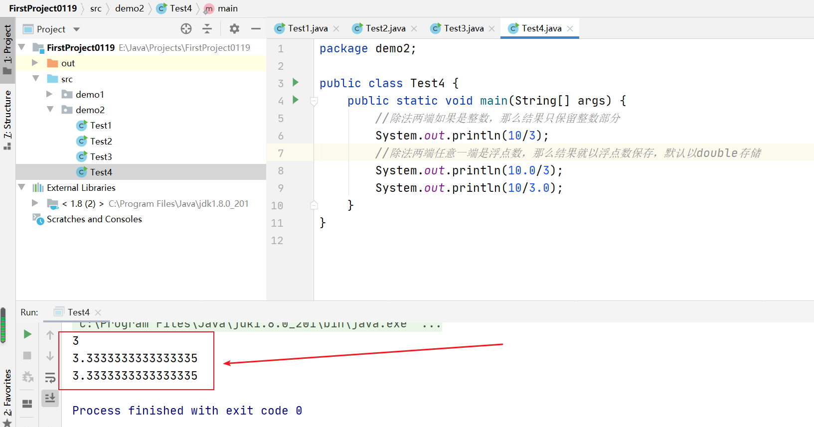 //除法两端任意一端是浮点数,那么结果就以浮点数保存,默认以double存储