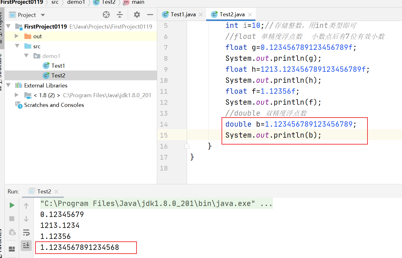 float类型的数值有一个后缀F或者f ,没有后缀F/f的浮点数值默认为double类型。也可以在浮点数值后添加后缀D或者d, 以明确其为double类型。