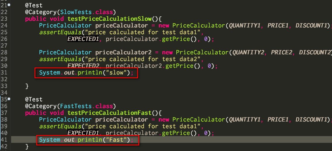 Before test, in order to prove that Slow method is NOT really executed, I add a system.out.println in each method: