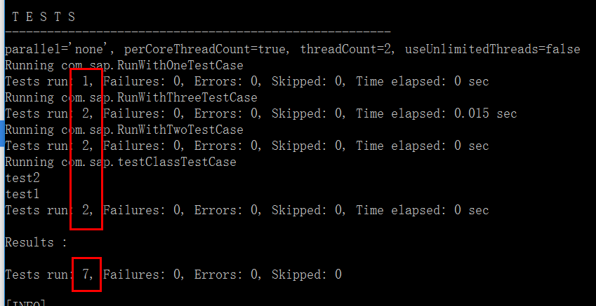 (4)In my project, by default all 7 test methods will be executed during Maven build: